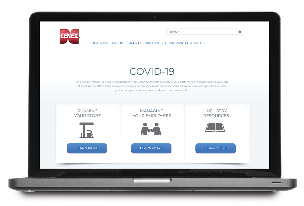 This is why we’ve created an all new digital resource, cenex.com/covid19, to help keep you and your employees informed of the latest information regarding the pandemic that is specific to you. Visit cenex.com/covid19 to check out this new resource designed to keep you, your employees, and your customers safe. Thank you for your hard work and dedication to the Cenex brand.